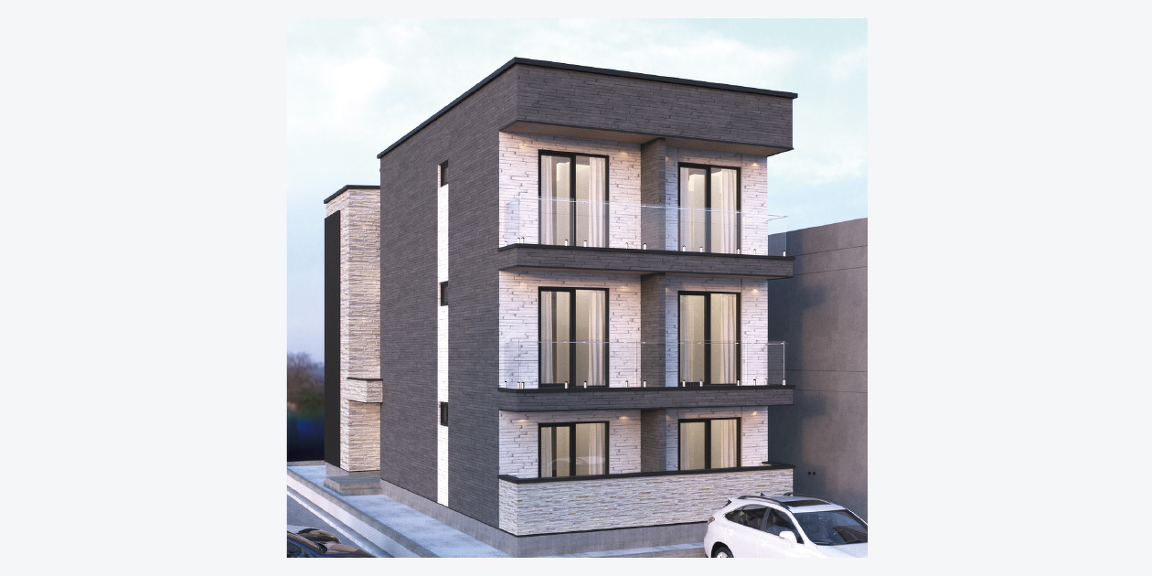 建物種別:分譲マンション 築年数:2023年 構造:鉄骨造 階数:3階 延床面積:314.73m² 施工場所:名古屋市港区土古町